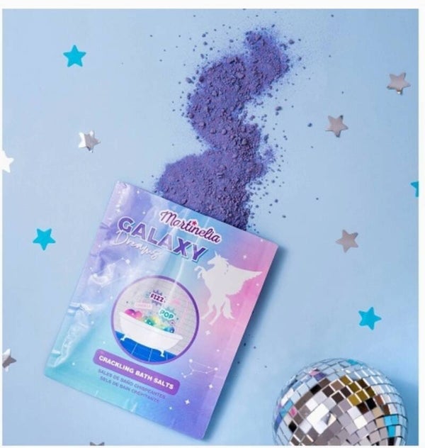 Trek je terug in een magische wereld met ons Galaxy Dreams Knetterend Badzout! Zodra het badzout in contact komt met water, begint het te knetteren, terwijl het een betoverende geur verspreidt. Kleuren en glans doen je badwater sprankelen als een sterrenhemel, voor een ultiem ontspanningsmoment.